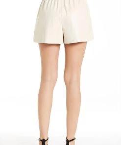 Relaxed dolphin shorts finished with fly stitching, side vents, side pockets, and raw edge hem. Solid color vegan leather on relaxed fit, styled with smocked waistband.Pairs perfect with our Itzel top by Another Love.12 1/2″ Front Rise (include waistband), 28 1/2″ Leg Opening, 2 1/4″ inseam (on Model size Small)40% PU (vegan leather) 30% COTTON 30% POLYESTERHand wash cold, Dry flatImported