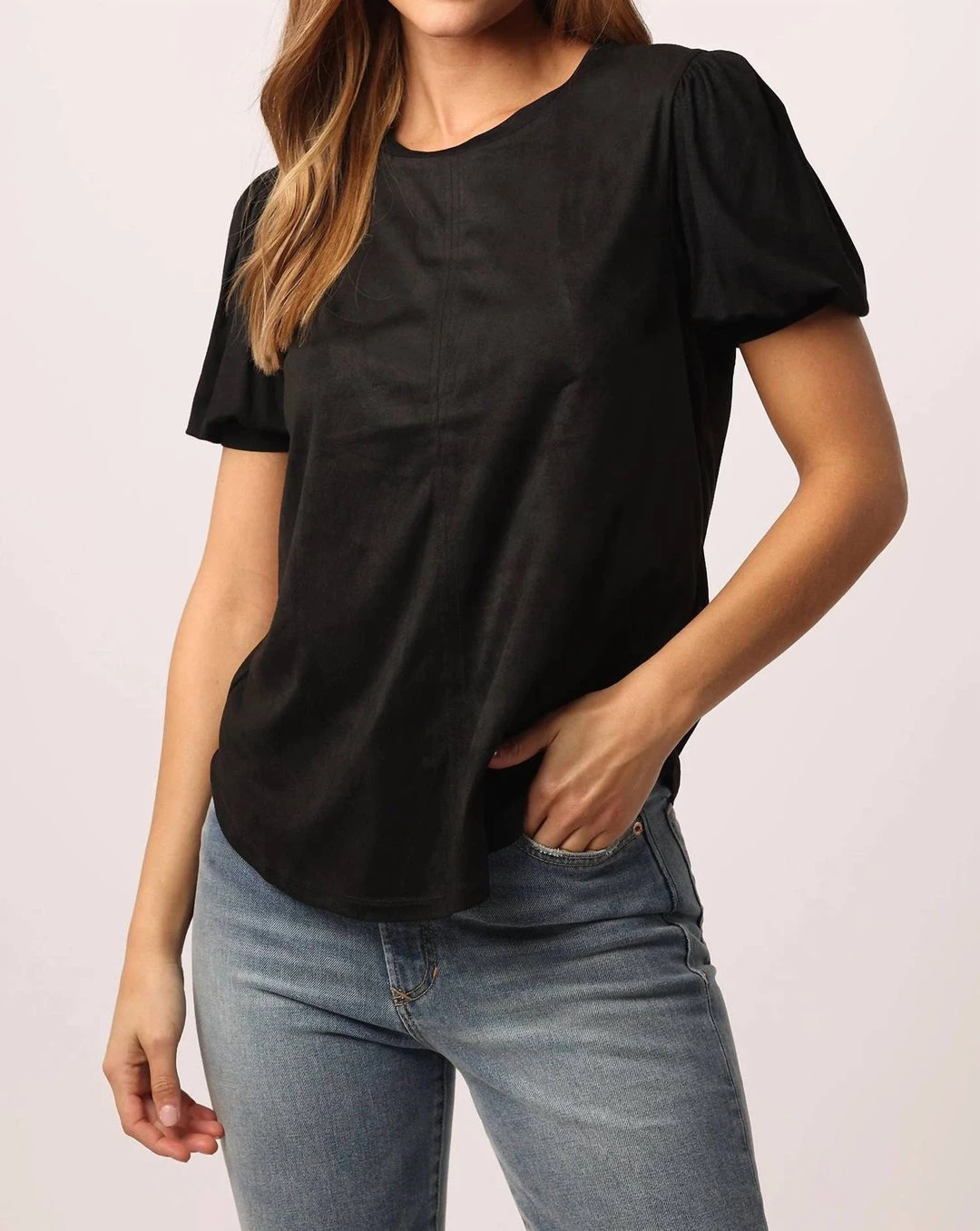 Top 10 ๐ Another Love Nisha Bubble Short Sleeve Suede Top in Black – ๐ฉ women ๐คฉ