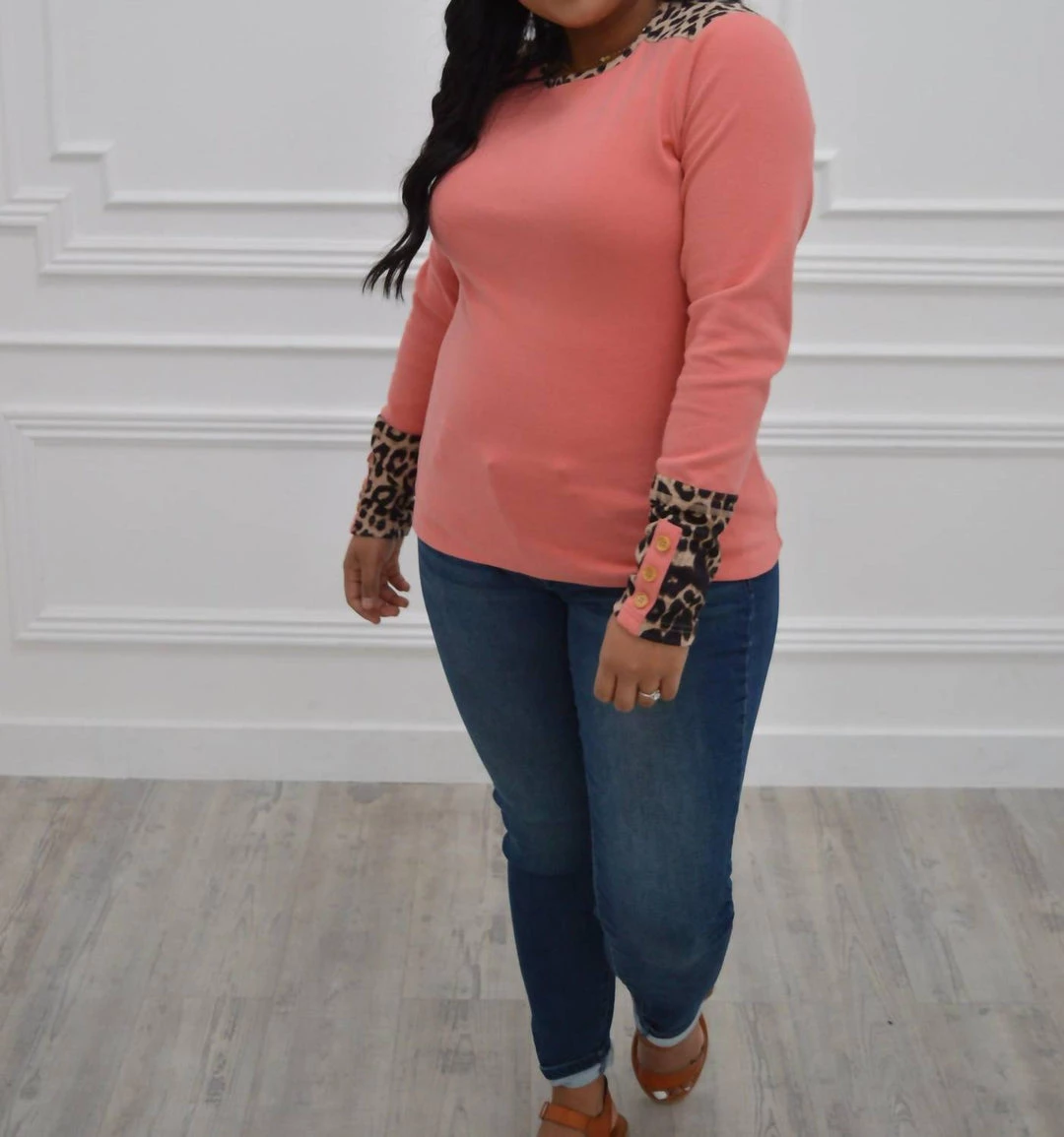 This stylish and thick sweater has that perfect pop of leopard… and did you see those buttons on the sleeves? Yes please!SIZE CHARTFit – This sweater has an overall fitted fit.Undergarments – This sweater can be worn with a regular undergarments.Fabric – Fabric has great stretch.All measurements are in inches and laying flat, not stretched.