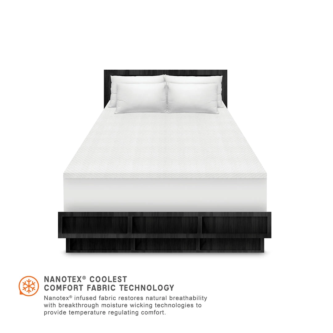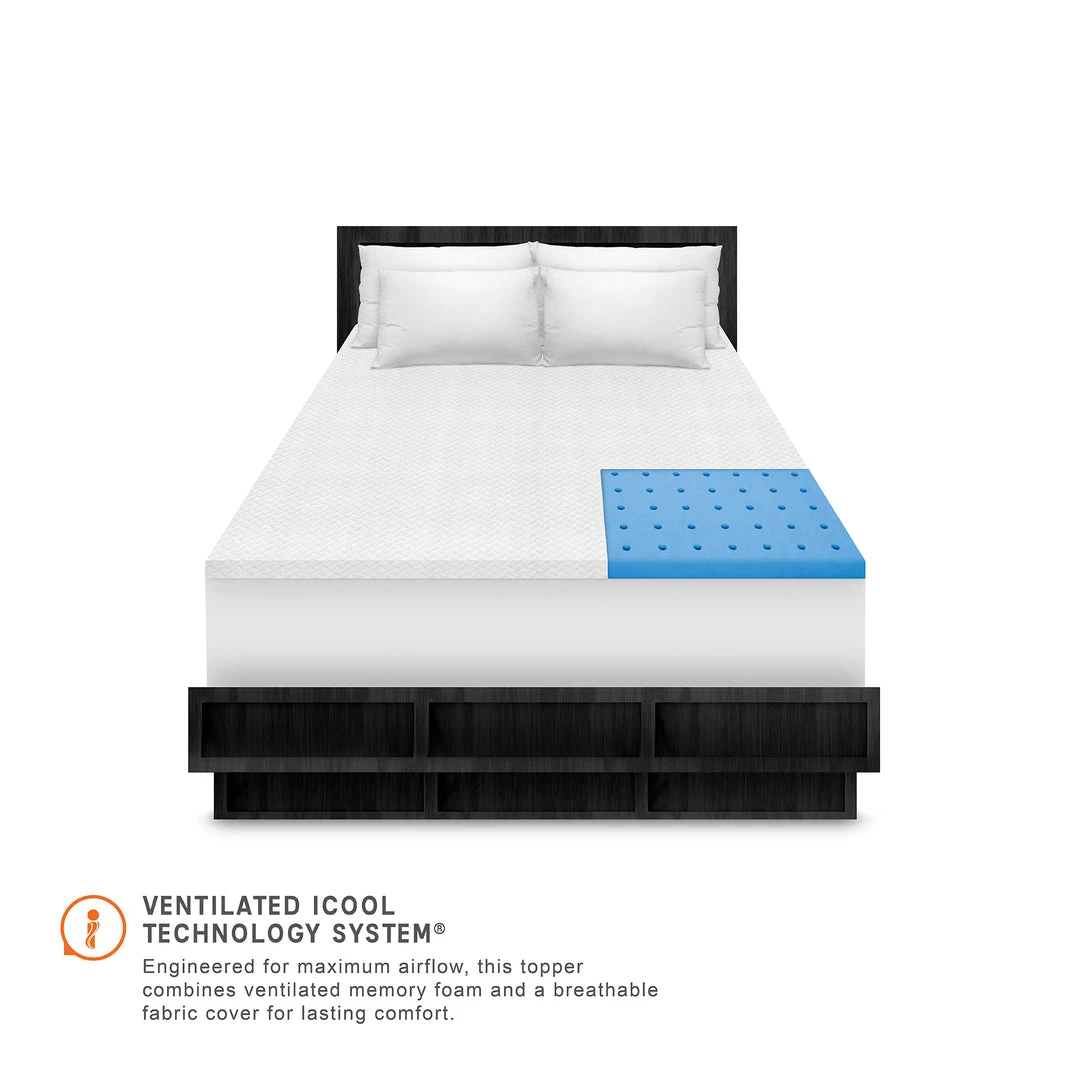 - Experience the cool, dry comfort of the 1.5-Inch Coolest Comfort Memory Foam Bed Topper from SensorPEDIC. The luxurious circular-knit cover, designed for exceptional breathability, features Nanotex Coolest Comfort Fabric Technology to wick away moisture and enhance airflow while restoring the fabricβs natural softness. Beneath the Coolest Comfort cover is 1.5 inches of 100% CertiPUR-US certified, open-cell memory foam for pressure-relieving support and therapeutic comfort. Engineered with ventilated iCOOL Technology System for maximum airflow, this topper combines ventilated memory foam and breathable fabric infused with Nanotex for advanced temperature-regulating comfort. The non-skid bottom keeps the topper in place so you can focus on enjoying a supportive and refreshingly cool sleep experience, while the easy to remove cover zips off for effortless cleaning.