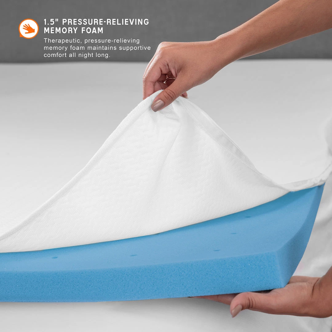 - SUPPORTIVE MEMORY FOAM- 1.5 inches of therapeutic, pressure-relieving memory foam maintains supportive comfort all night long
