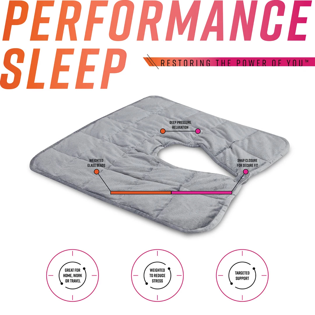 - Restore the power of you as therapeutic glass beads provide even pressure against the shoulders and neck for targeted support when using the Complete Performance Weighted Shoulder Wrap from SensorPEDIC. This wrap is evenly filled with 4lbs of weighted high density glass beads that transfer steady, soft pressure against the shoulders for deep support and relaxation that relieves tension and soothes pain. The plush cover featured on this wrap adds a layer of smooth softness and is anti-microbial to help keep you feeling fresh. The snap closure ensures a secure fit so you can use this wrap while laying down and relaxing at home, sitting up in a chair while at work, or on the go as you travel to reduce stress. SensorPEDIC Performance products are tested to provide superior pressure relief and comfort to maximize rest and recovery and help you achieve optimal performance.