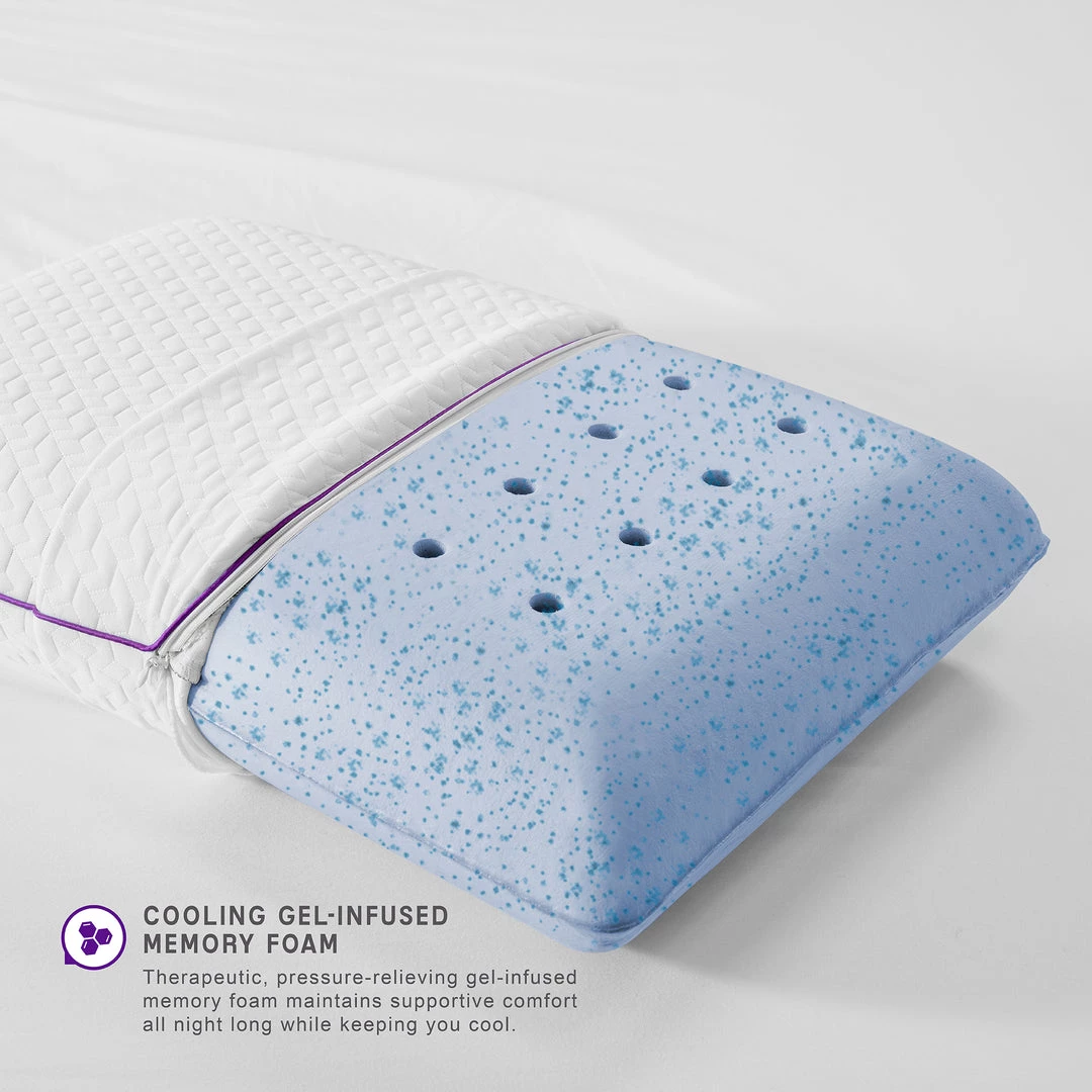 - Experience the comfort of climate control in this Temperature Regulating Coolest Comfort Memory Foam Bed Pillow from SensorPEDIC. This temperature-regulating, gel-infused memory foam pillow provides the pressure-relieving support of memory foam with incredible cooling technology for a more comfortable nightβs sleep. The ventilated memory foam is infused with cooling gel support beads for ideal comfort and incorporates the breathable iCOOL Technology System to enhance the temperature regulating by increasing the memory foamβs airflow. The pillowβs luxury circular-knit cover provides breakthrough moisture-wicking technology while restoring the fabricβs natural softness through Nanotex Coolest Comfort Technology. The easy to remove cover zips off for easy cleaning, while the classic design makes this pillow ideal for all sleep styles.